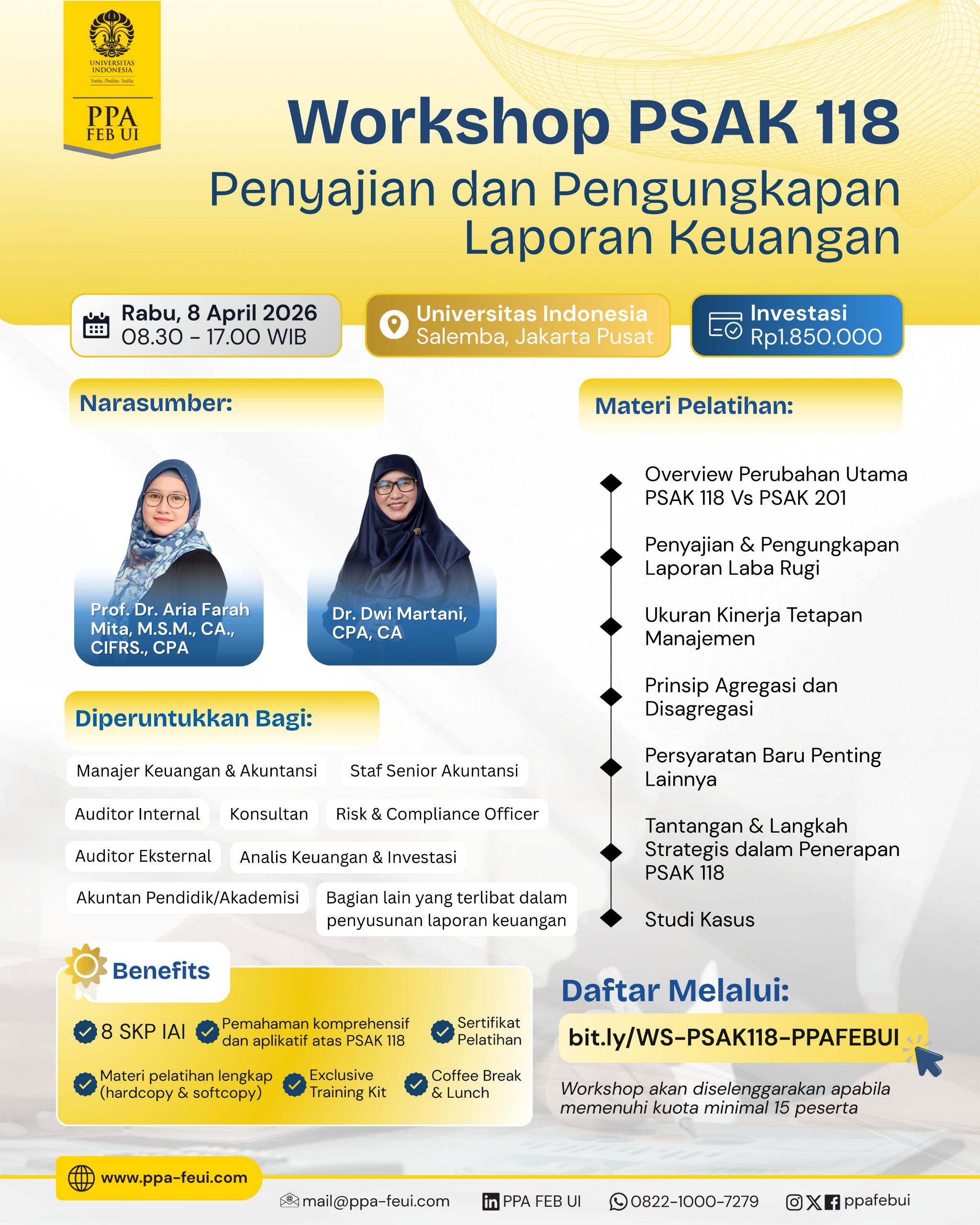 --------PPA FEB Ul mantap, membimbing dan membekali saya ilmu yang sangat berharga untuk modal ujian sertifikasi CFP maupun pelaksanaan di lapangan dan pekerjaan
